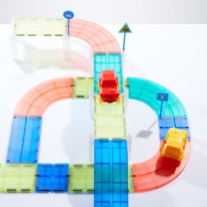 Klocki magnetyczne to prawdziwe wyzwanie dla każdej małej inżynierki i każdego małego inżyniera. Dzięki tworzeniu konstrukcji może rozwijać swoją wyobraźnię przestrzenną, podstawowe pojęcie o zasadach działania fizyki oraz koordynację ręka-oko. Nie potrzebuje do tego kleju ani innych dodatkowych narzędzi! Silny magnes sprawia, że elementy trzymają się ze sobą, co ułatwia tworzenie bardziej zaawansowanych projektów. Nie rozpadną się nieproszone! Do zestawu dołączona jest instrukcja, w której zaprezentowano zbiór przykładowych konstrukcji – od bardzo łatwych do zaawansowanych. Stwórzcie wspólnie szalone tory wyścigowe, po których będziecie mogli wspólnie mknąć.