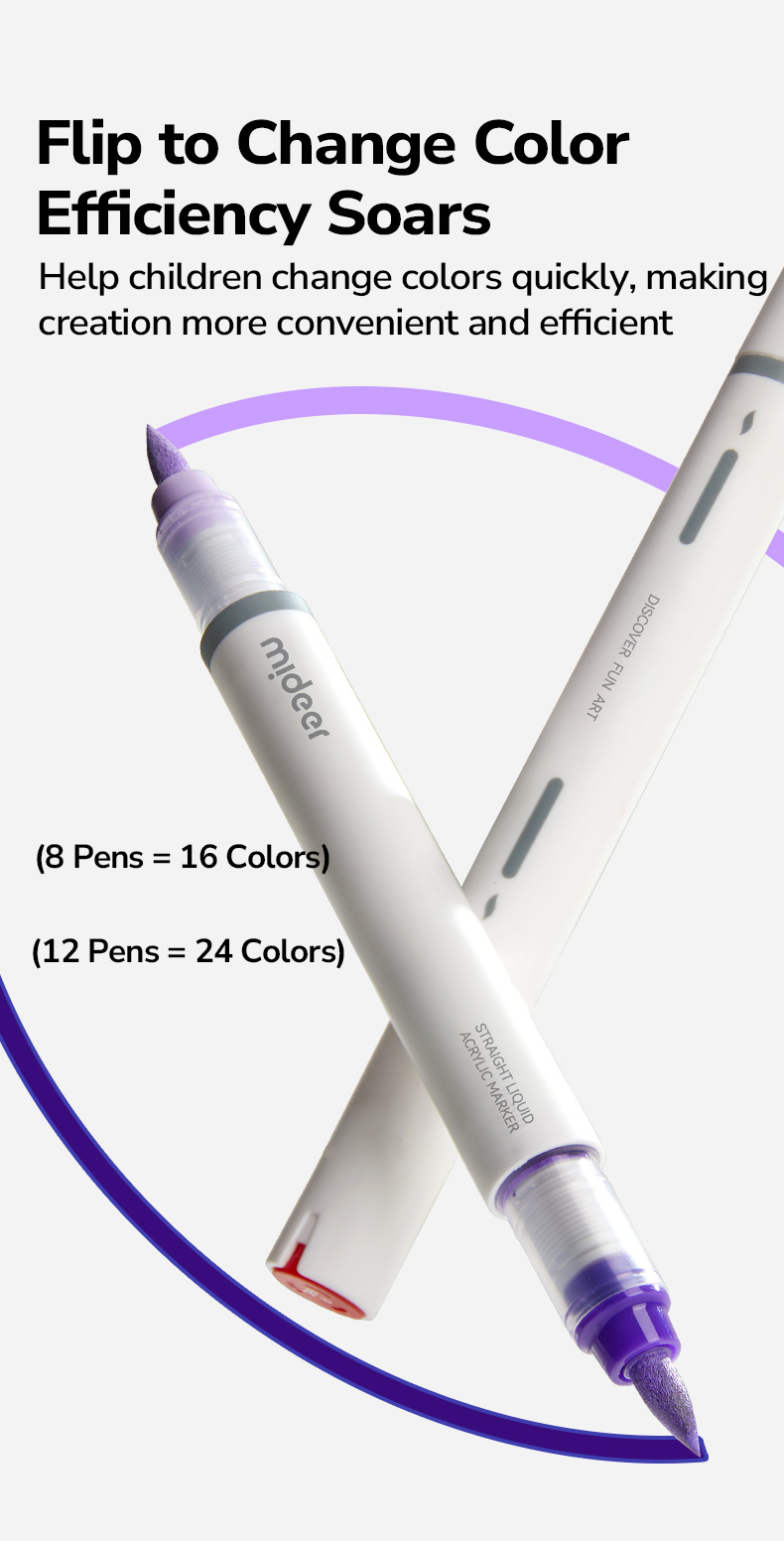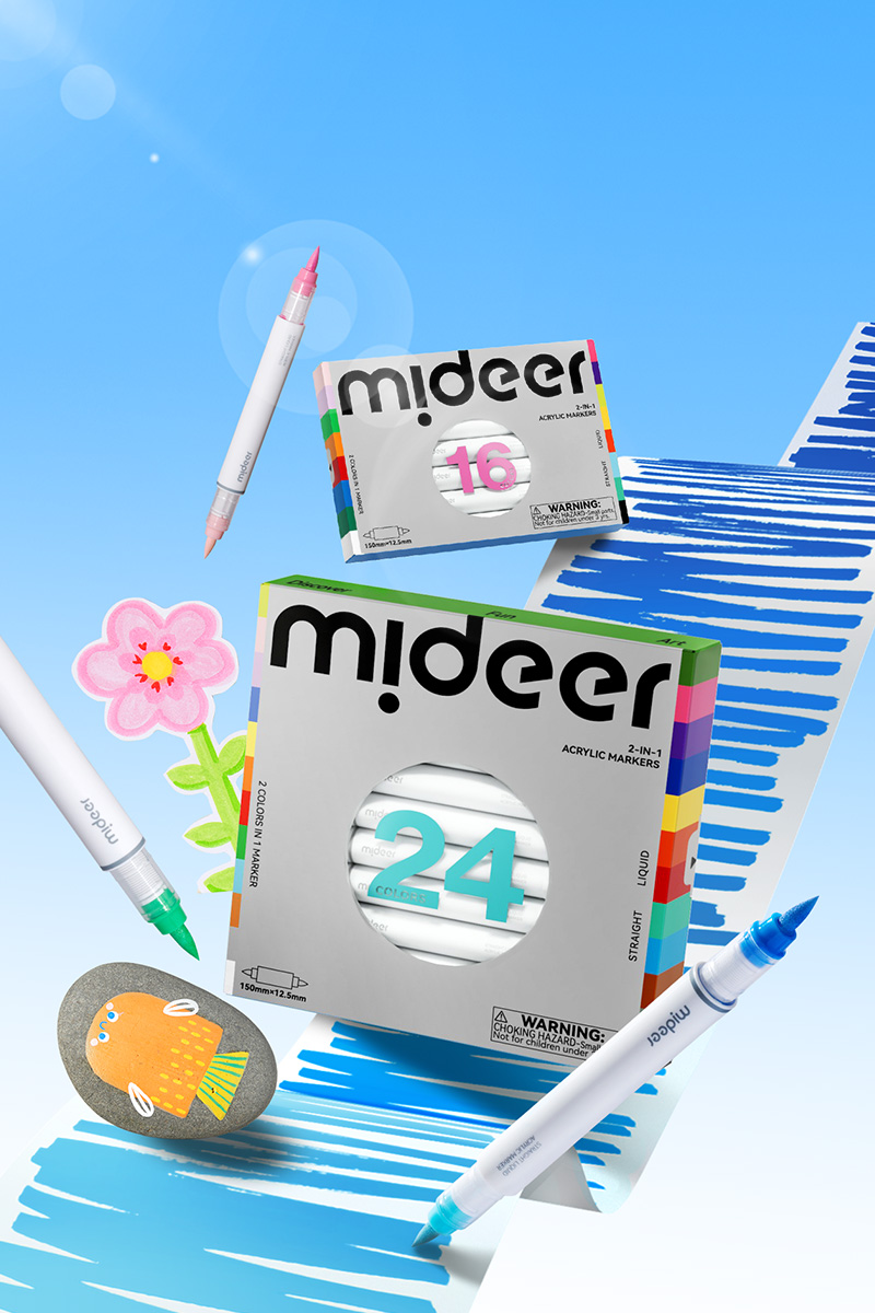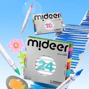 Dwustronne markery Mideer pomagają w takich momentach, bo w jednym narzędziu kryją dwa kolory. Wystarczy obrócić marker, by szybko sprawdzić drugi odcień i kontynuować pracę bez przerywania.