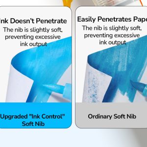 Tusz nakłada się gładko, a intensywne pigmenty dobrze wyglądają na papierze, drewnie czy szkle. To zestaw, który sprzyja eksperymentowaniu i pozwala testować więcej pomysłów w krótszym czasie.