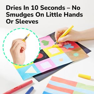 Pędzelkowa końcówka pozwala rysować zarówno delikatne linie, jak i szerokie pociągnięcia, a kolory dobrze kryją papier, drewno czy tkaninę – dzięki temu pomysły naturalnie rozwijają się w różne kierunki. Po skończonej pracy tuba zamienia się w miękki pokrowiec, który łatwo zabrać na zajęcia, do plecaka albo w podróż.